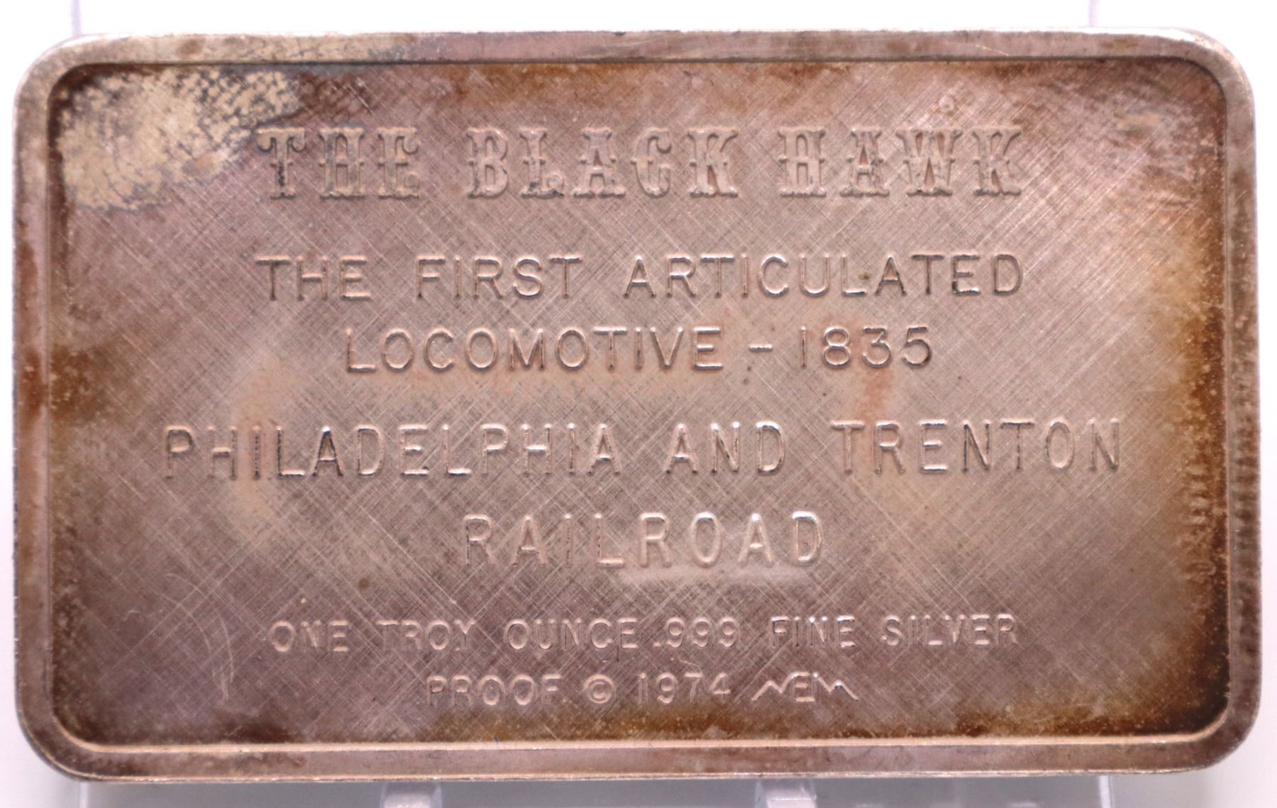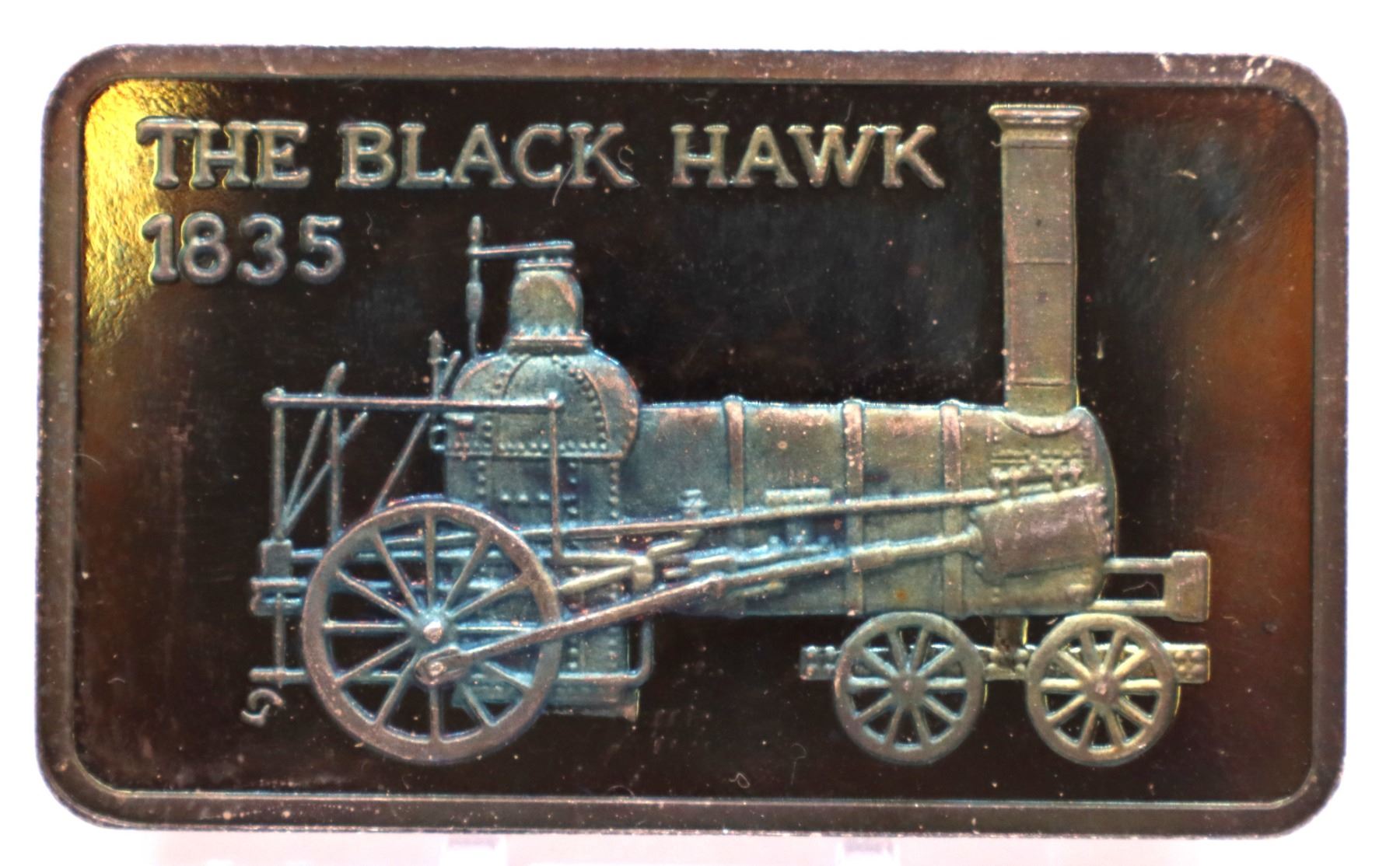 The Black Hawk 1835 1oz proof silver art bar. Nice toning. Hard to see on photo. (tax exempt)