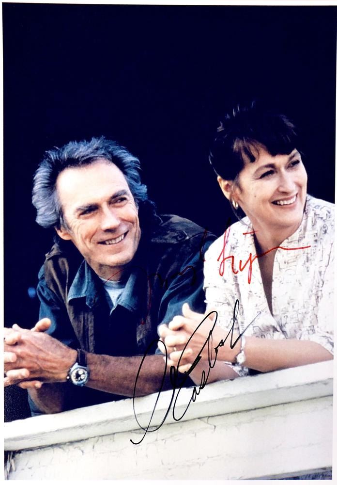 The Bridges of Madison County Clint Eastwood and Meryl Streep facsimile signed movie photo. 8x10 inches. This item is a reprint of an original autograph