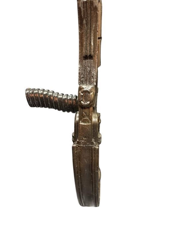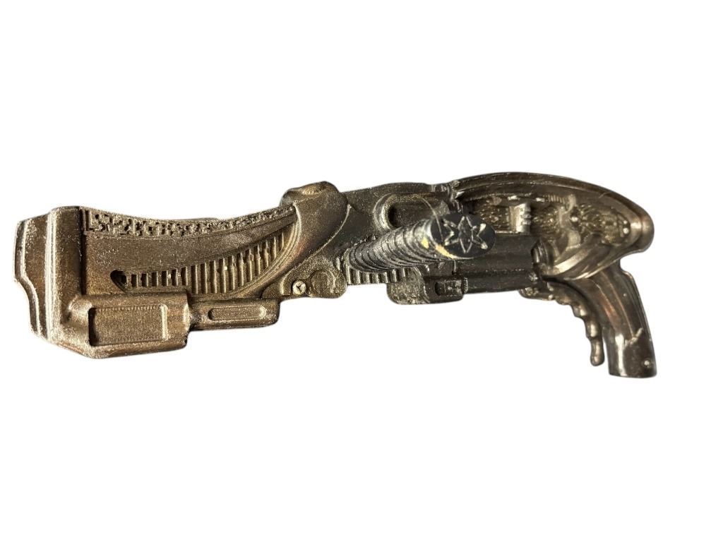 Original Necromonger gravity rifle used in the production of the science fiction adventure film 'The Chronicles of Riddick' (2004), where the wanted criminal Riddick arrives on a planet called Helion Prime, and finds himself up against an invading empire called the Necromongers, an army that plans to convert or kill all humans in the universe.