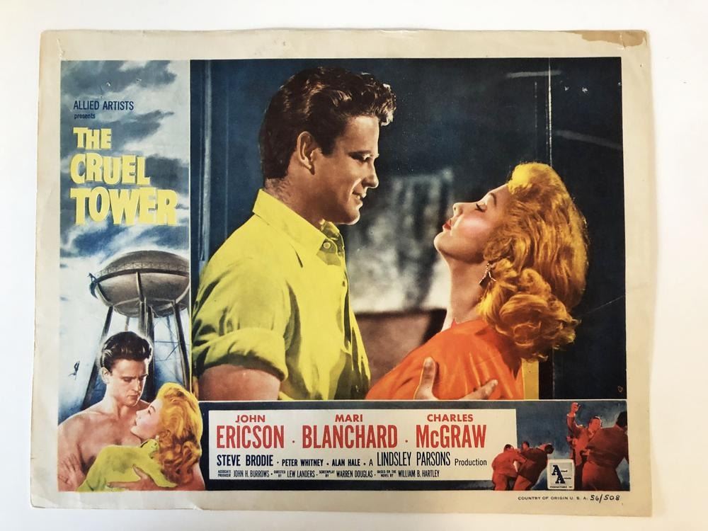 The Cruel Tower original 1956 vintage lobby card on heavy card stock. 11x14 inches