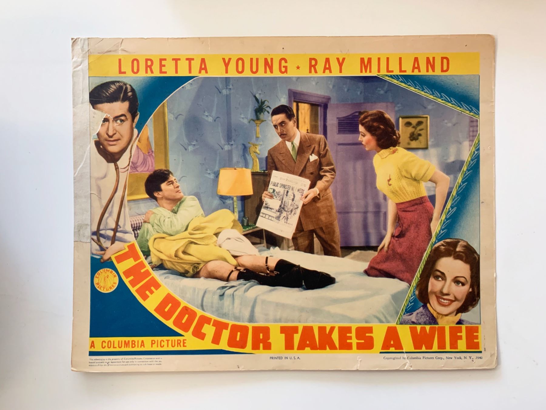 The Doctor Takes a Wife original 1940 vintage lobby card on heavy card stock. 11x14 inches