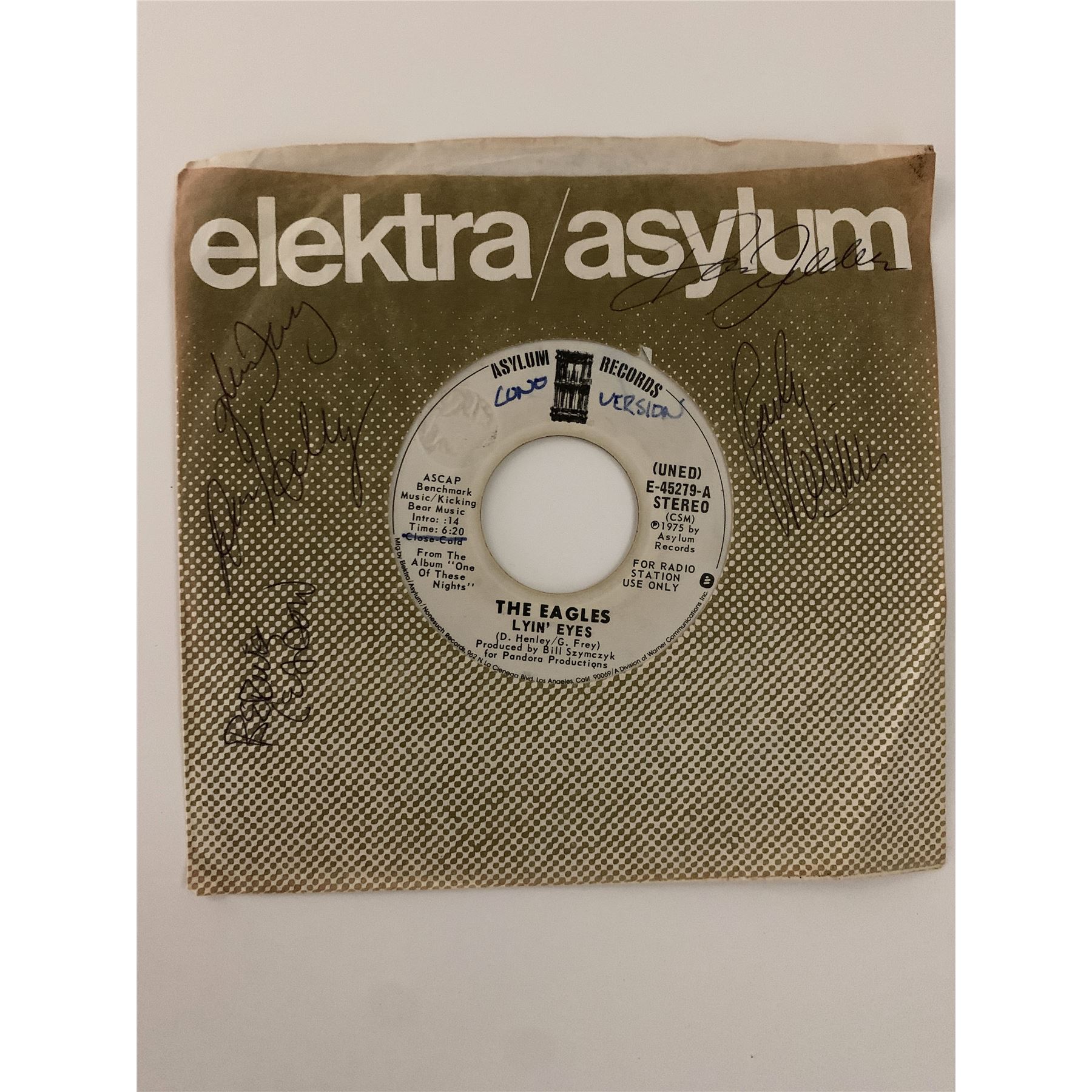 The Eagles - Lyin' Eyes Signed Vinyl, 7", 45 RPM, SP - Specialty pressing autographed by Glenn Frey, Don Henley, Randy Meisner, Don Felder and Bernie Leadon. -