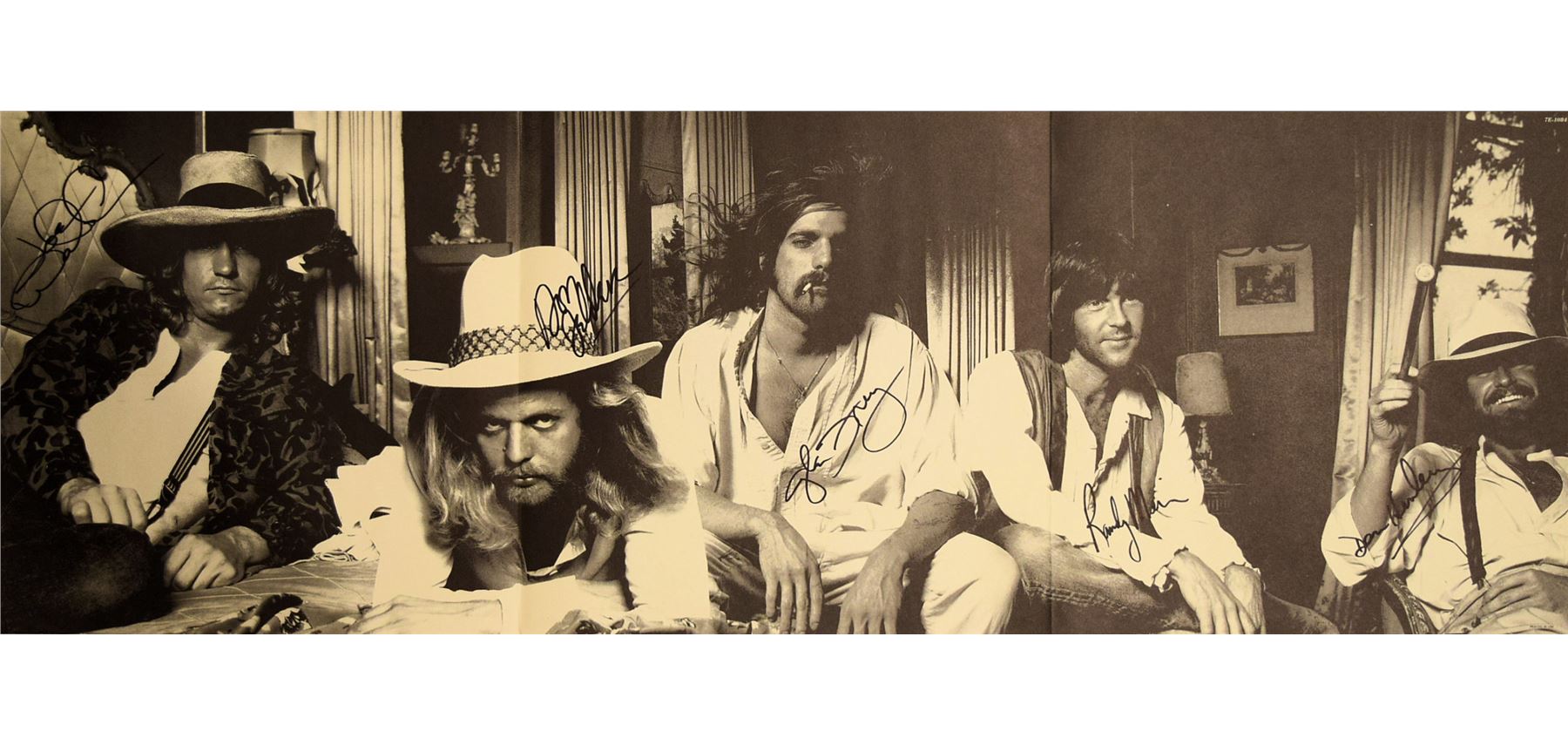 33 in. by 11 in. The Eagles insert poster. Signed: Don Henley, Glen Frey, Joe Walsh, Don Felder, and Randy Meisner.