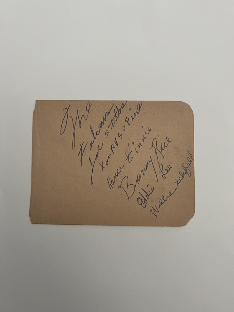 The Falcons signature sheet autographed by Joe Stubbs, Eddie Lee, Willie Schofield, Bonny Rice, Lance Finney