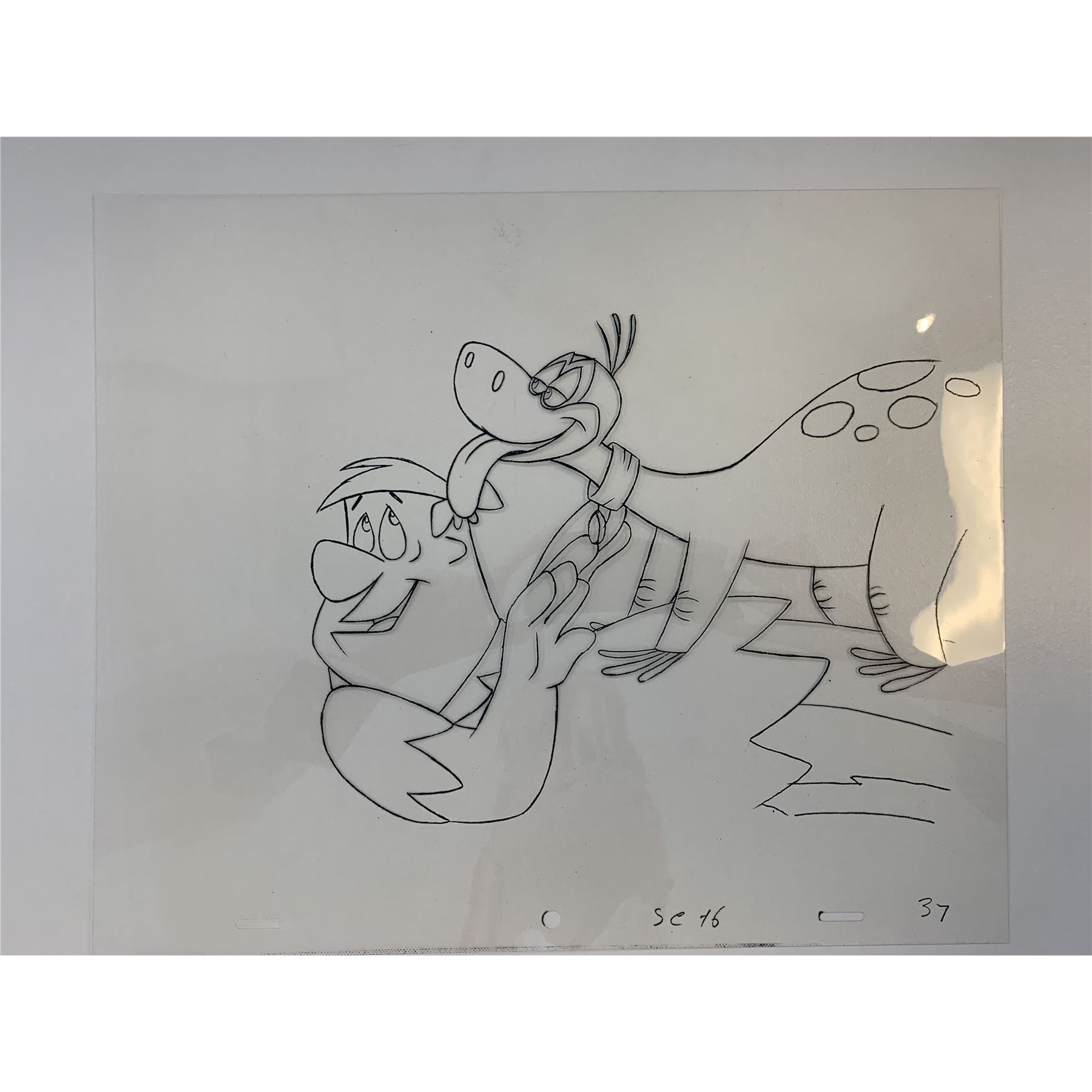 The Flintstones original Fred Flintstone & Dino cartoon artwork sericel. 10x12 inches
