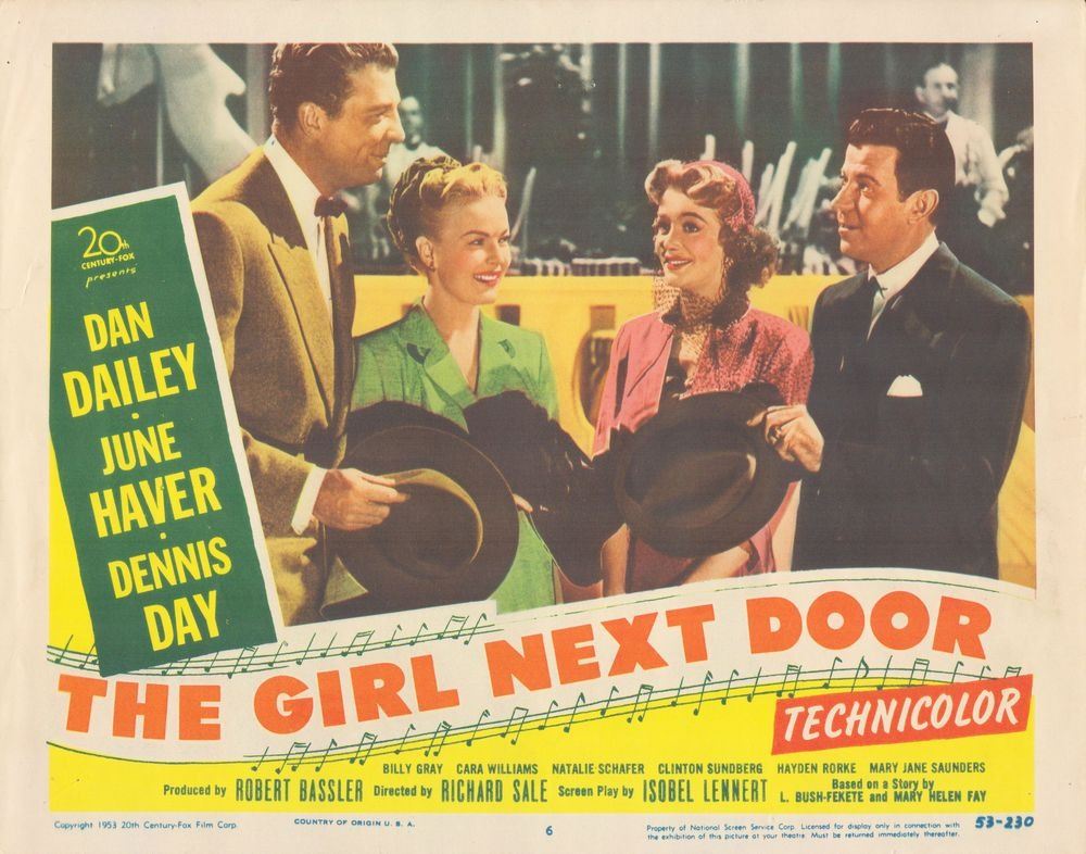 The Girl Next Door 1953 original vintage lobby card on heavy card stock. 11x14 inches.