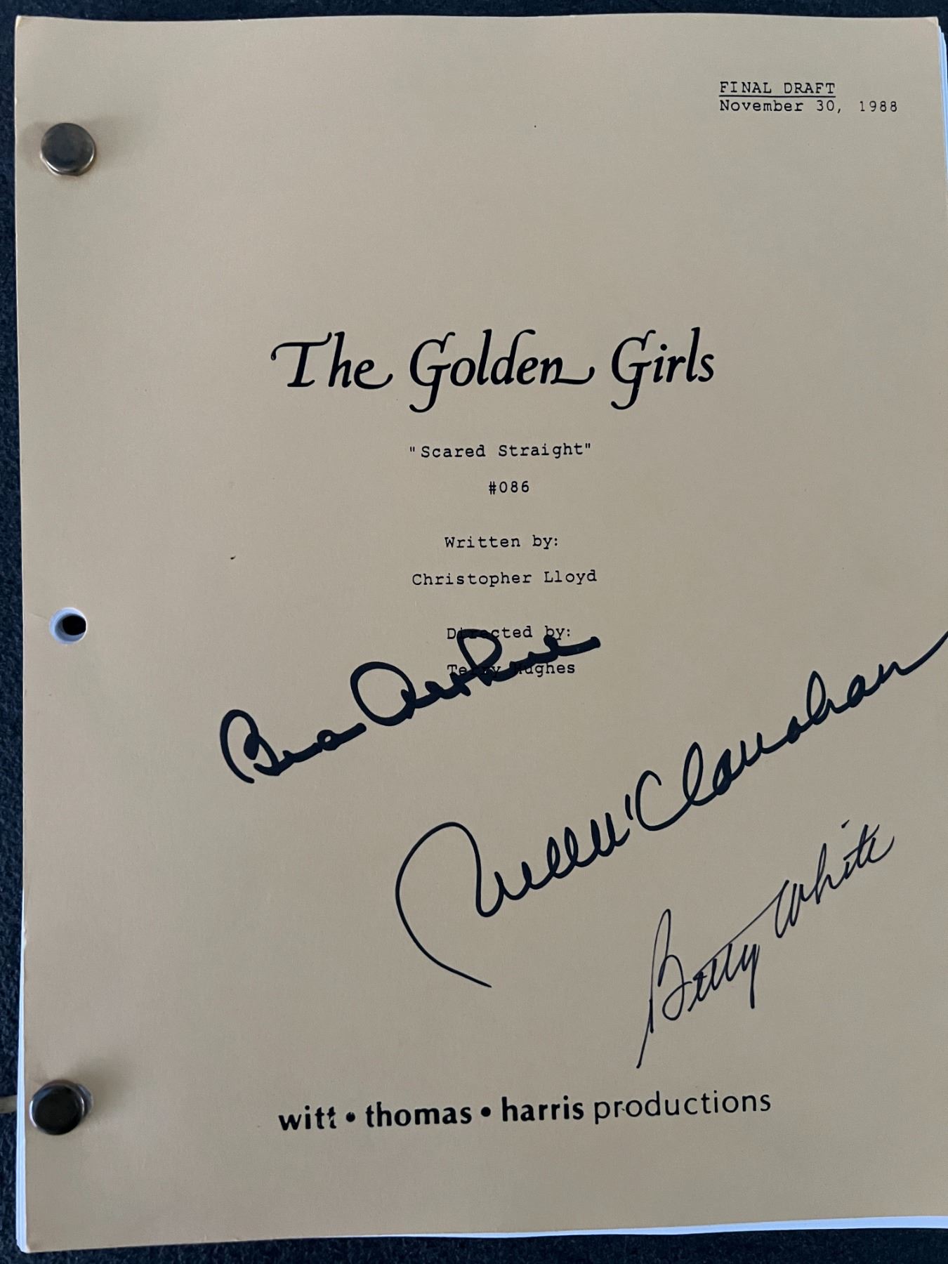 The Golden Girls cast signed script autographed by Betty White, Rue McClanahan and Bea Arthur. 8x10 inches