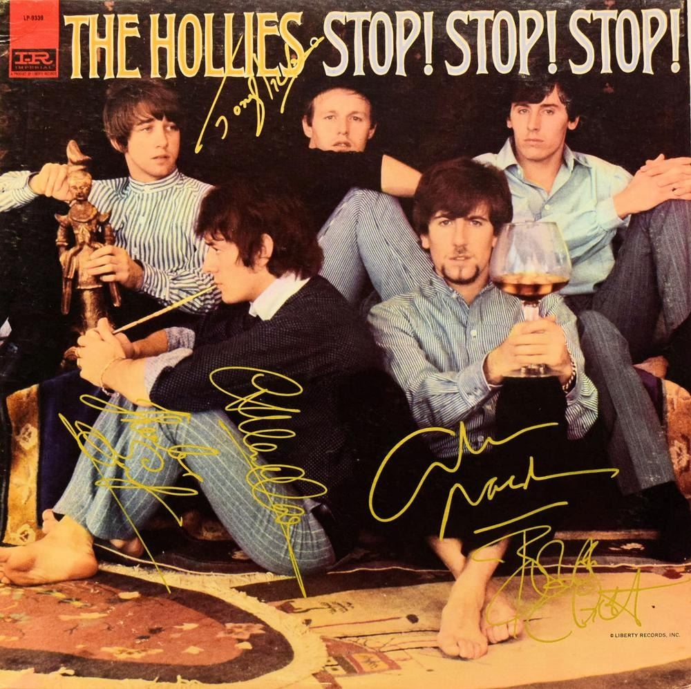 The Hollies 1966 "Stop! Stop! Stop!" album. Signed: Tony Hicks, Bobby Elliott, Allan Clarke, Thanks Eric Haydock & Graham Nash.