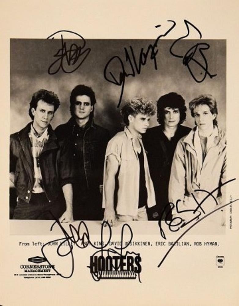 8 in. by 10 in. The Hooters black and white Columbia promotional photo autographed by Eric Bazilian, Rob Hyman, John Lilley, Andy King and David Uosikkinen.