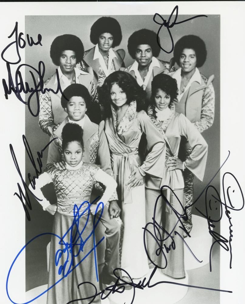 The Jacksons signed photo autographed by Michael Jackson, Jermaine Jackson, Randy Jackson, Jackie Jackson, Janet Jackson and Tito Jackson. 8x10 in. This item is a reprint of an original autograph.