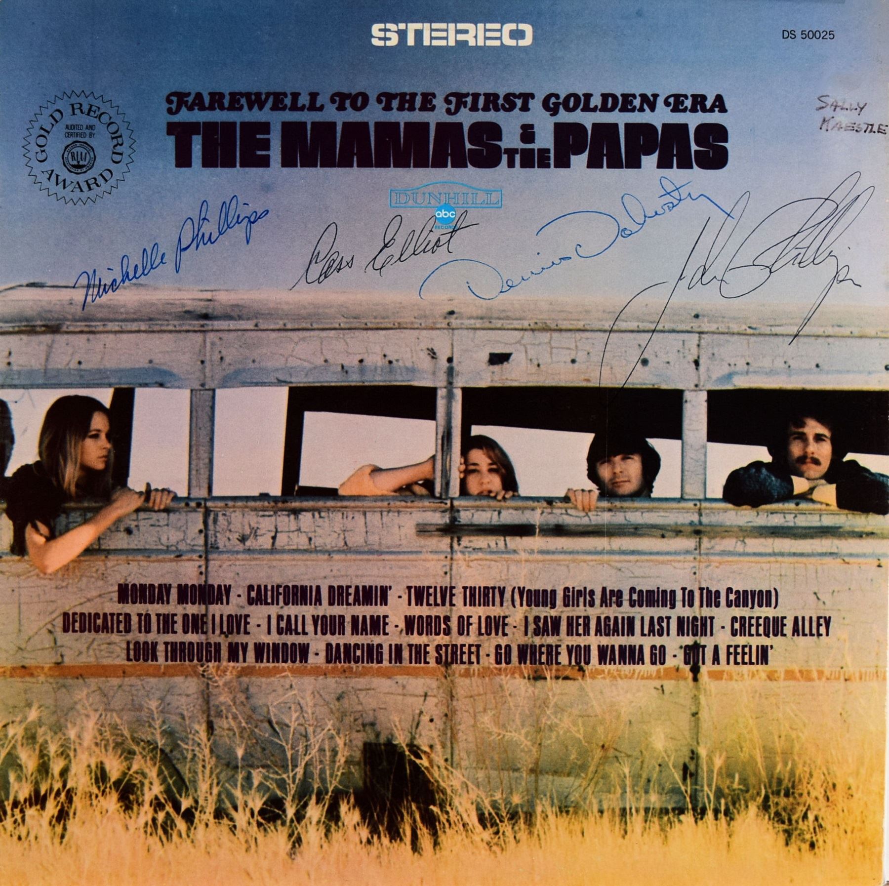 The Mamas and the Papas Farewell to the First Golden Era album. Signed: Cal Dreamin Denny Doherty, Cass Elliot, John Elliot, and Michelle Phillips.