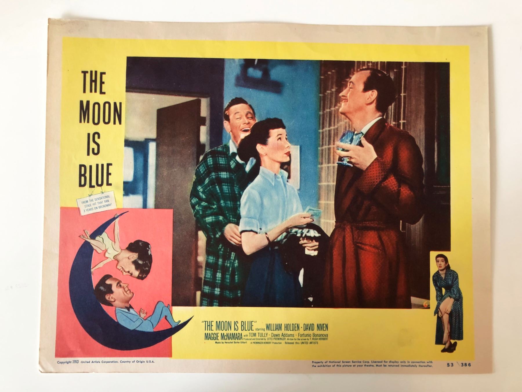 The Moon Is Blue original 1953 vintage lobby card on heavy card stock. 11x14 inches