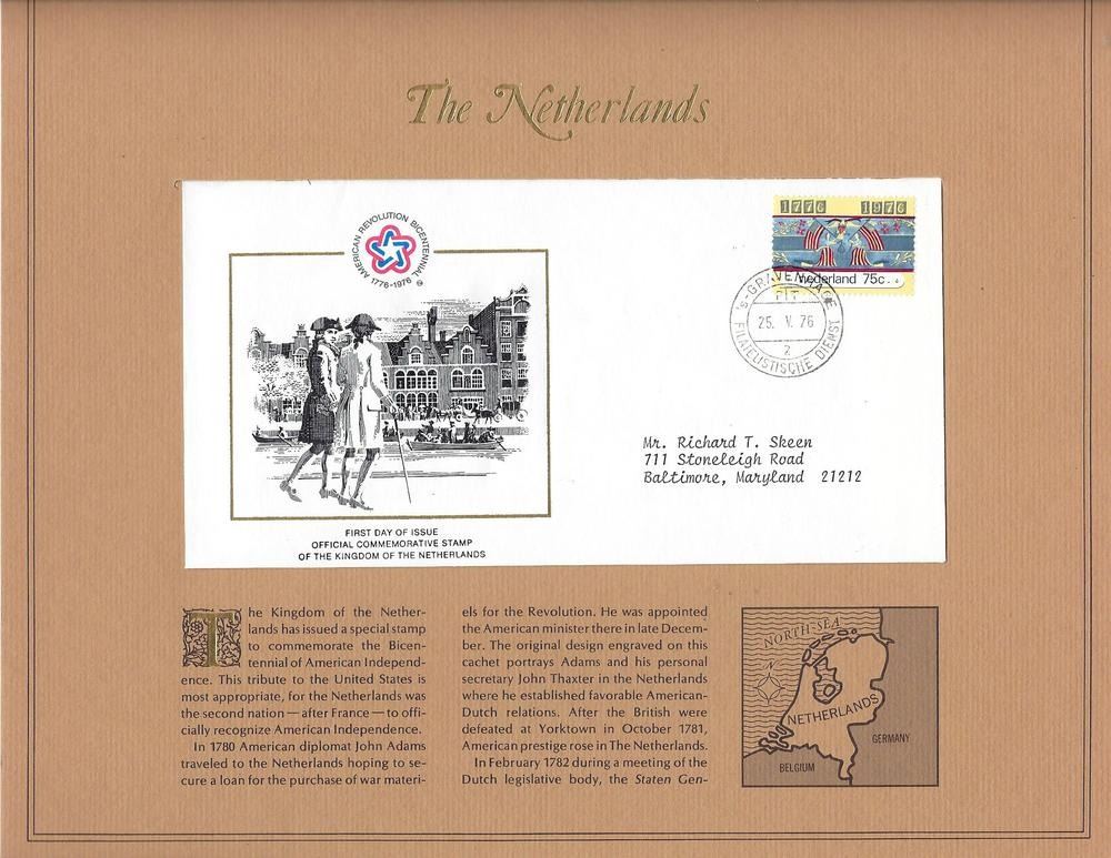 The Netherlands - American Bicentennial Commemorative FDC - 25.V.76 - The Netherlands has commemorated the Bicentennial of American Independence with the issuing of a Special Commemorative Stamp on a Limited Edition First Day Cover