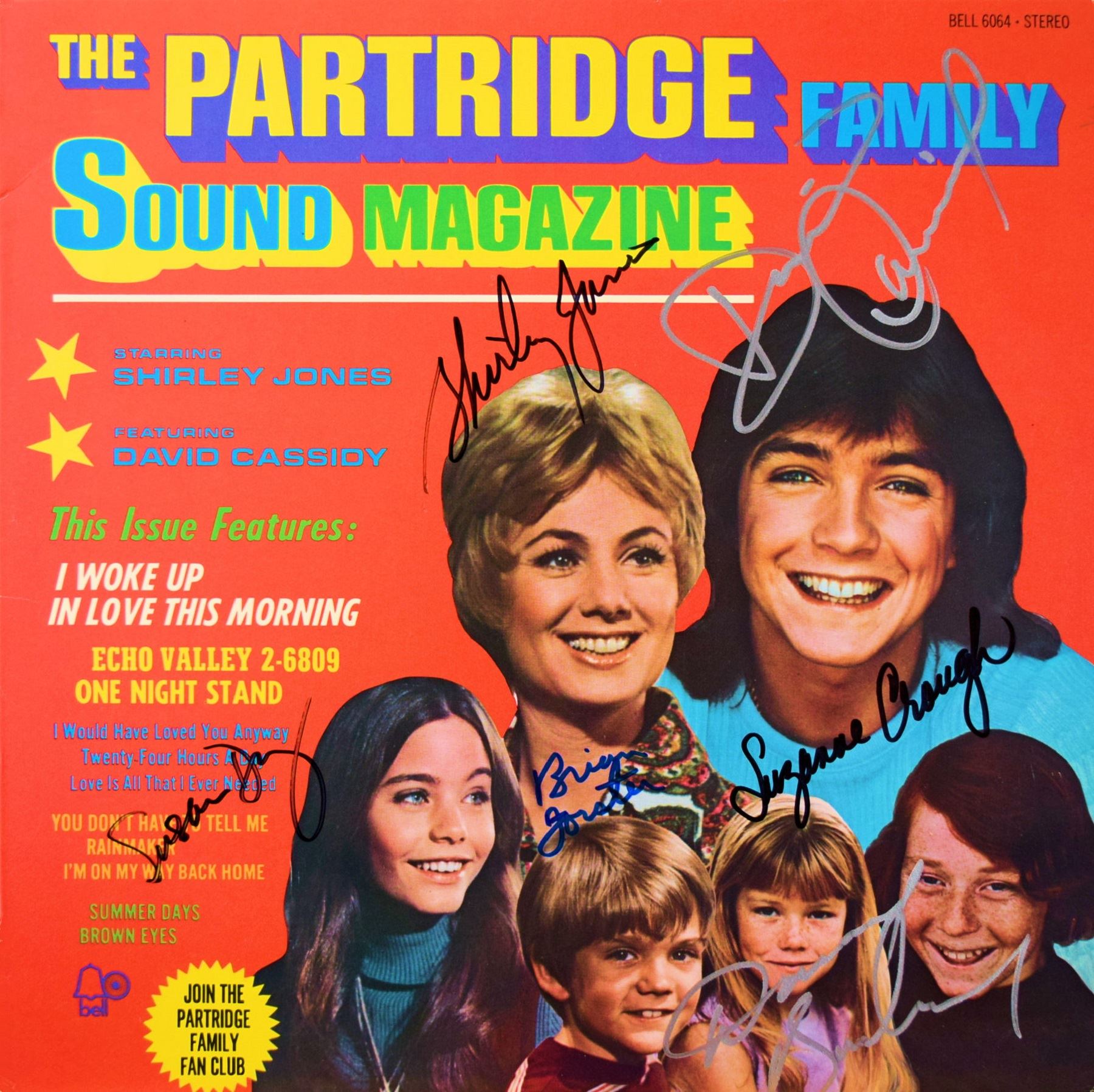 The Partridge Family 1971 Sound Magazine album. Signed: David Cassidy, Danny Bonaduce, Shirley Jones, Susan Dey, Brian Foster, and Susan Crough.