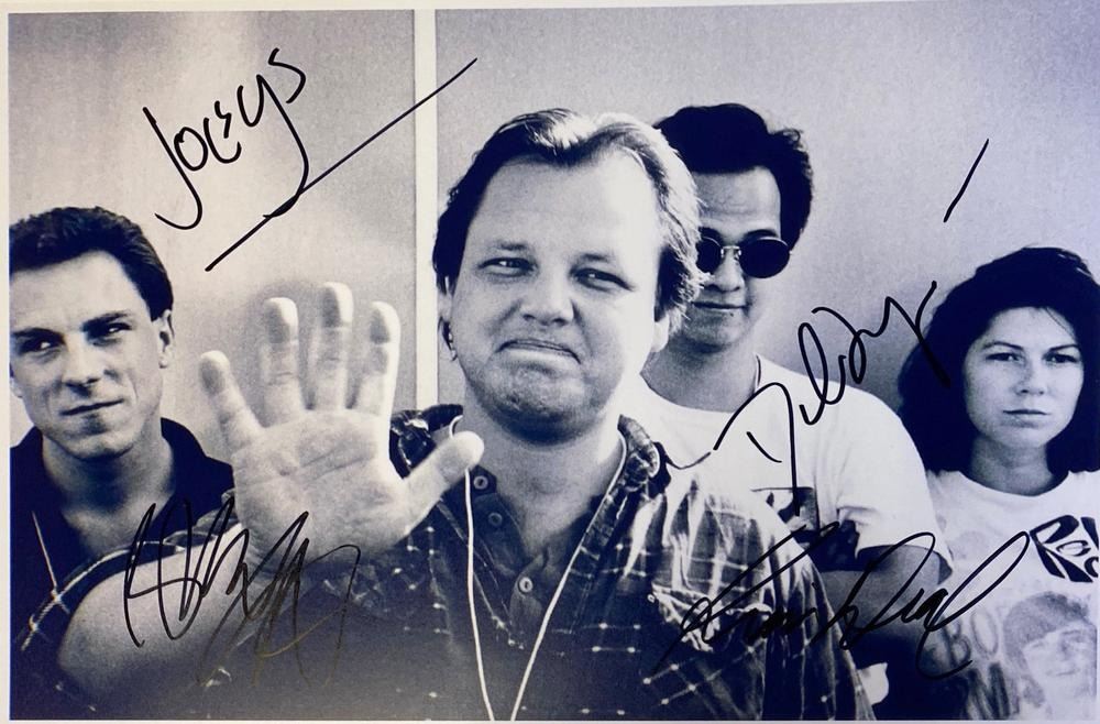 The Pixies band facsimile facsimile signed photo autographed by Joey Santiago, Black Francis, David Lovering and Kim Deal. 8x10 inches. This item is a reprint of an original autograph
