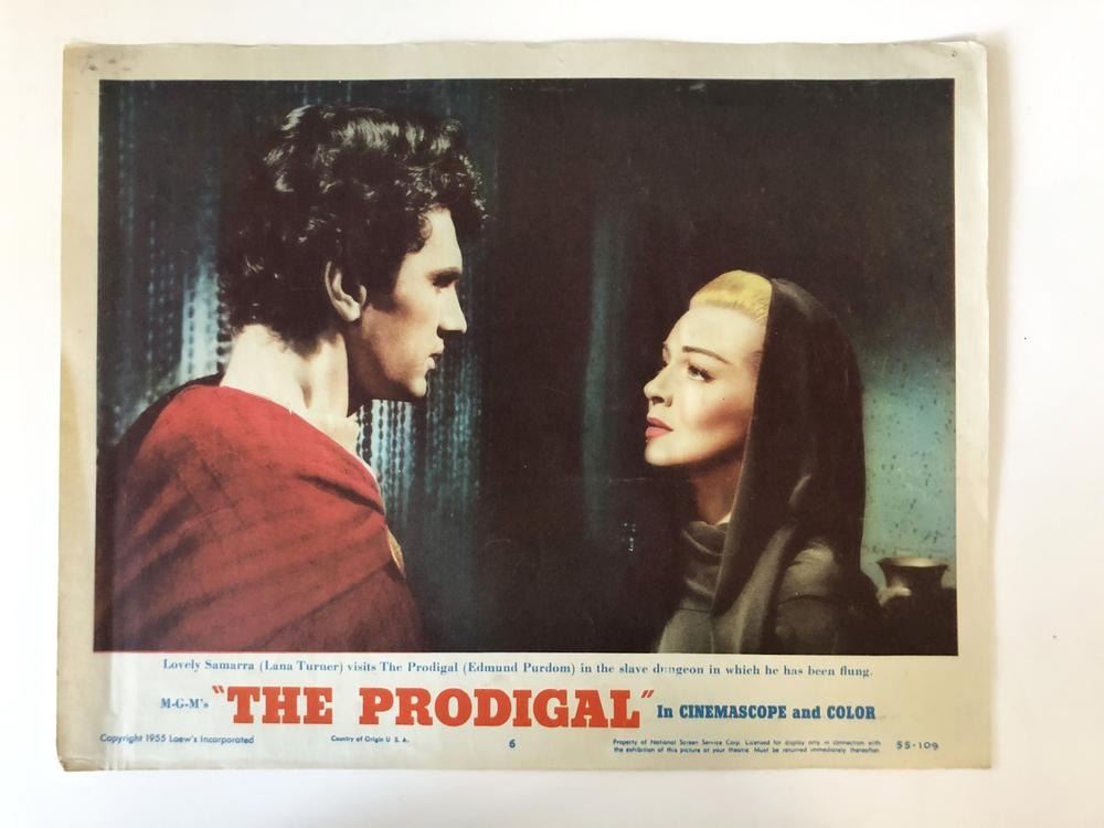 The Prodigal original 1955 vintage lobby card on heavy card stock. 11x14 inches