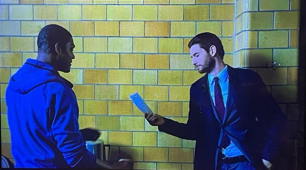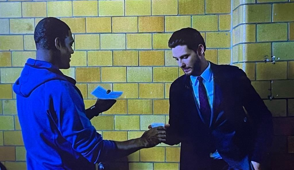 From the episode 'Kandahar' (103) of Marvel's The Punisher. In the episode, Russo gives Hoyle a check to fund Hoyle's veteran counseling session.