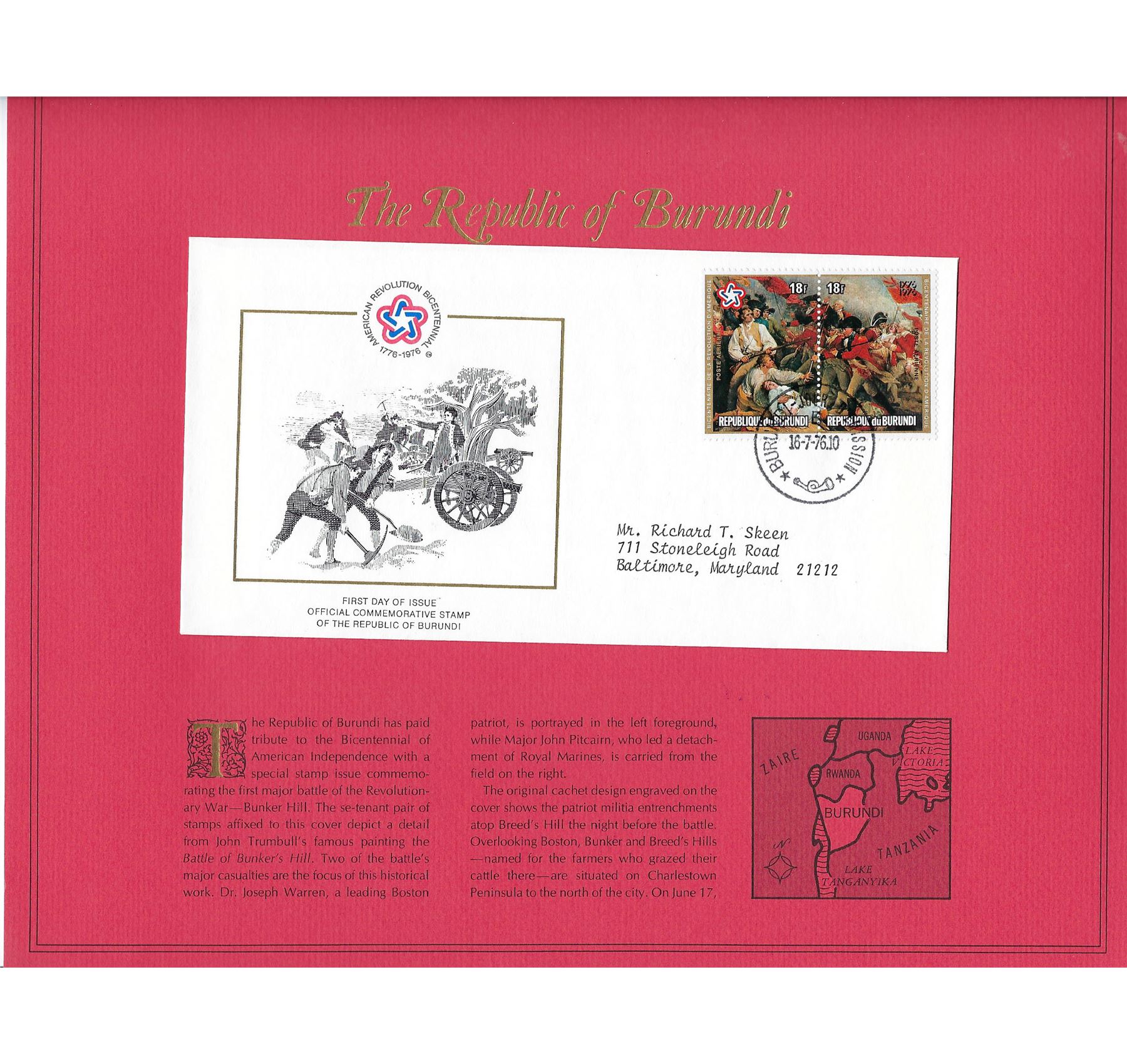 The Republic of Burundi - American Bicentennial Commemorative FDC - 16-7-76.10 - The Republic of Burundi has commemorated the Bicentennial of American Independence with the issuing of a Special Commemorative Stamp on a Limited Edition First Day Cover