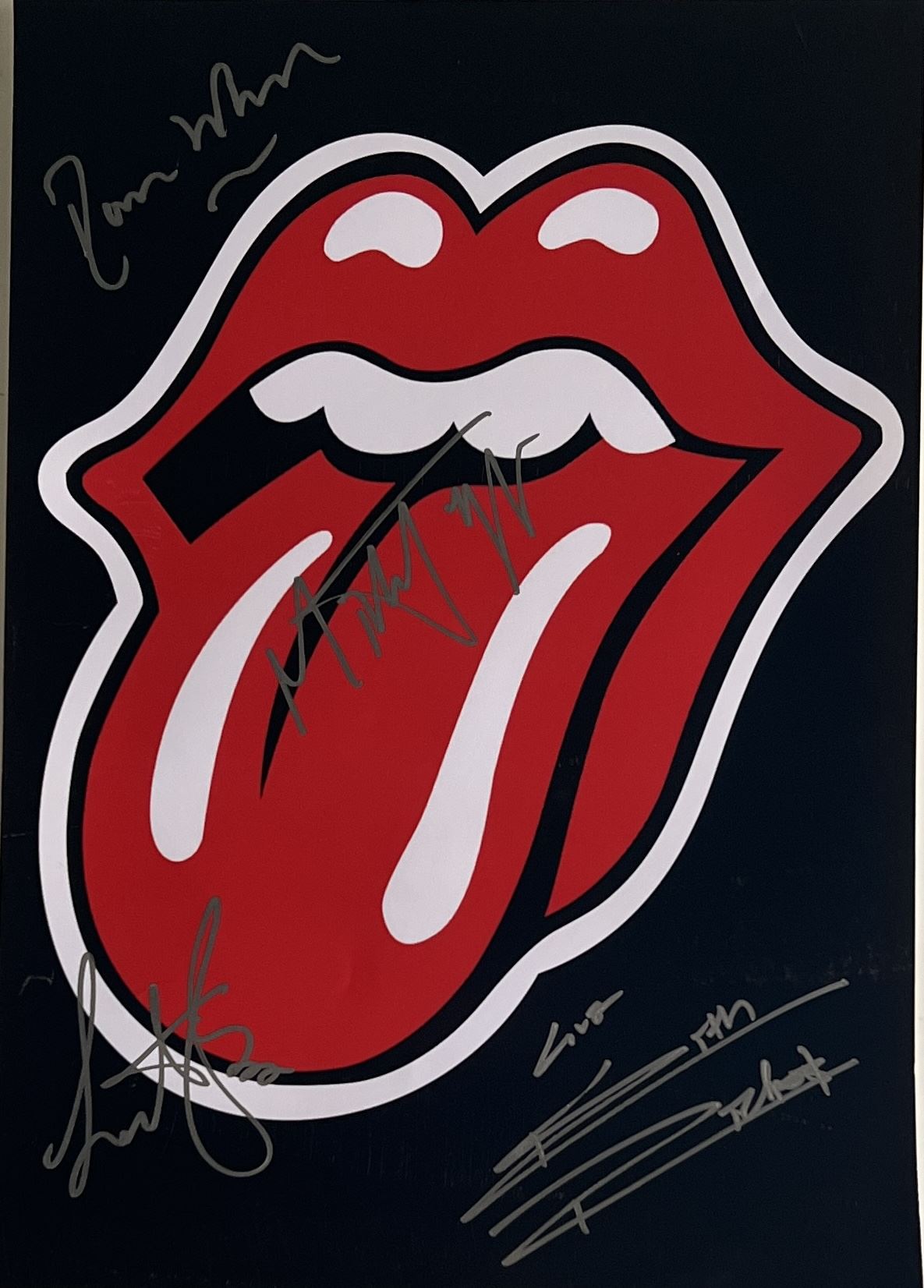 The Rolling Stones band signed mini poster autographed by Mick Jagger, Keith Richards, Ronnie Wood and Charlie Watts. 11x17 inches. GFA Authenticated
