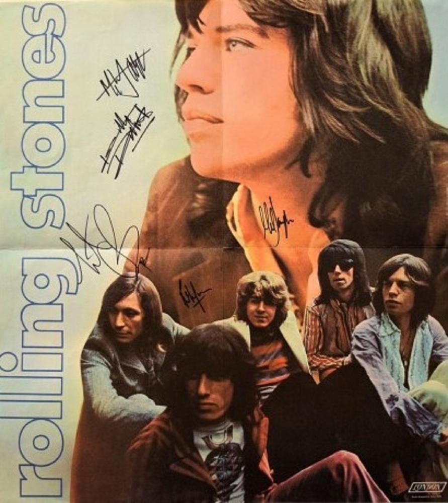 The Rolling Stones 21 in. by 23 in. insert poster autographed by Mick Jagger, Keith Richards, Bill Wyman, Mick Taylor and Charlie Watts.