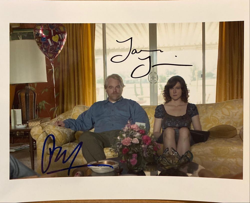 The Savages signed movie photo autographed by Philip Seymour Hoffman and Laura Linney. 8x10 inches