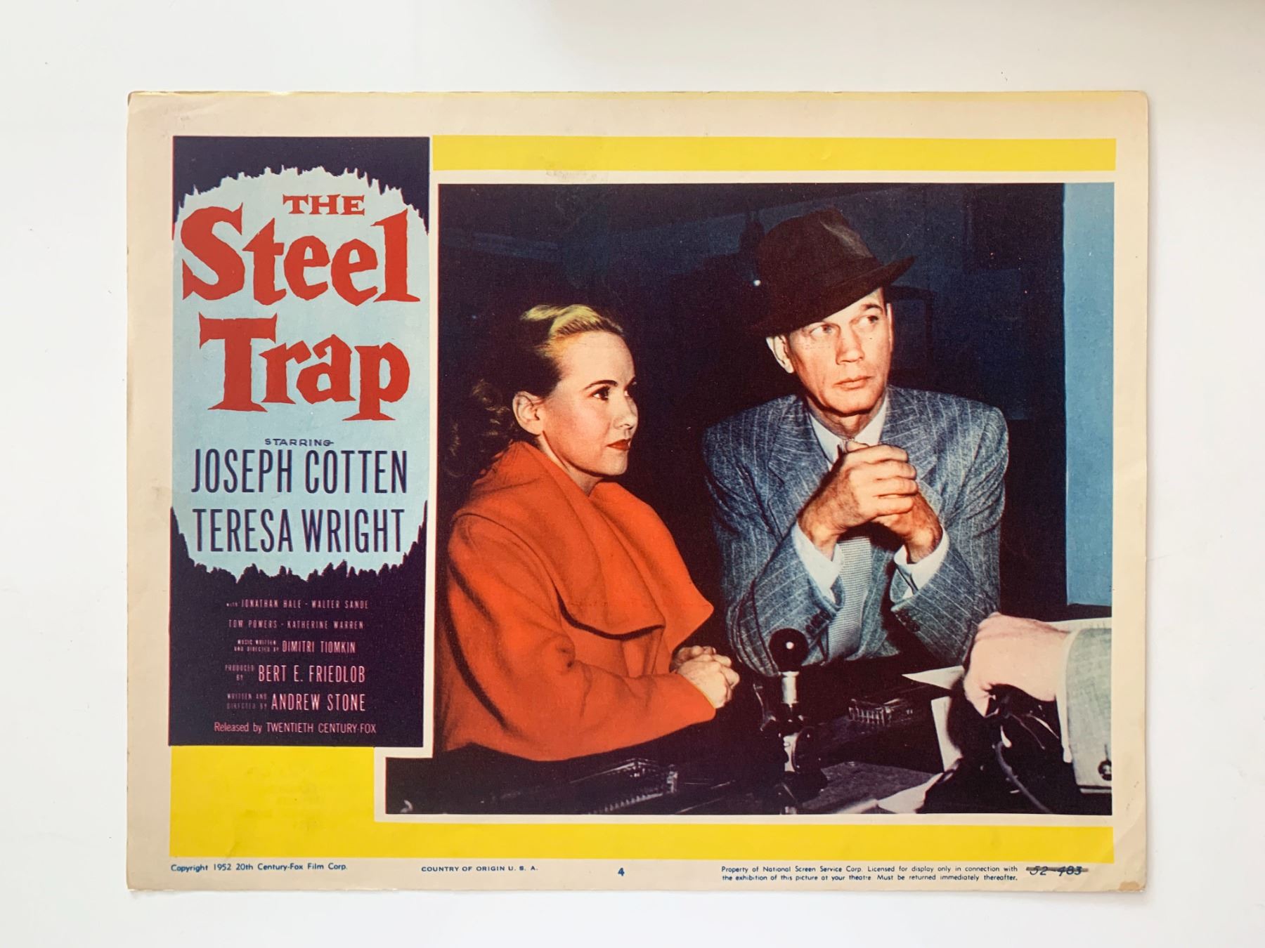 The Steel Trap original 1952 vintage lobby card on heavy card stock. 11x14 inches
