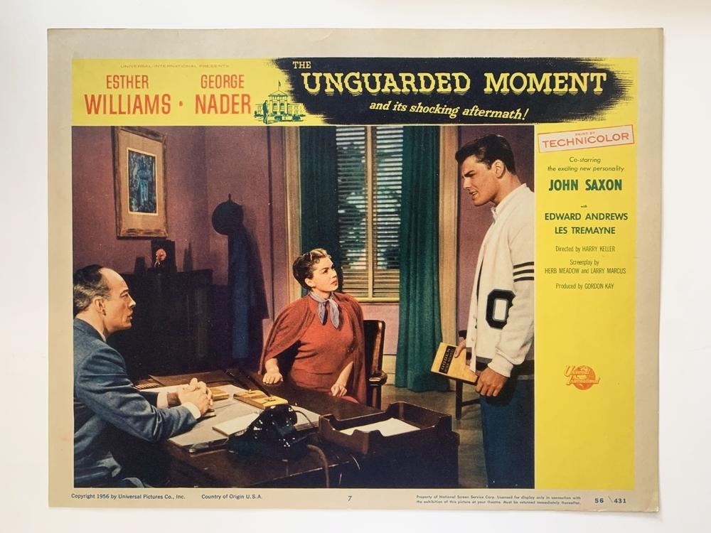 The Unguarded Moment original 1956 vintage lobby card. 11x14 inches