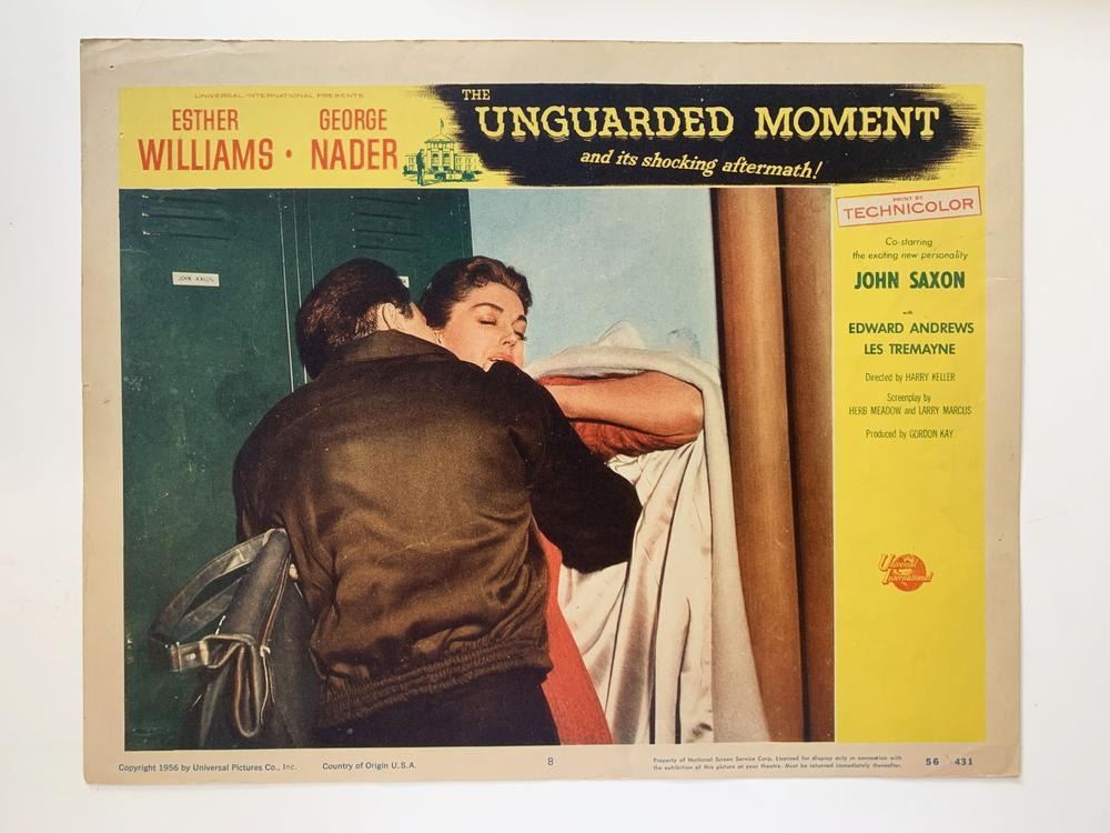 The Unguarded Moment original 1956 vintage lobby card. 11x14 inches