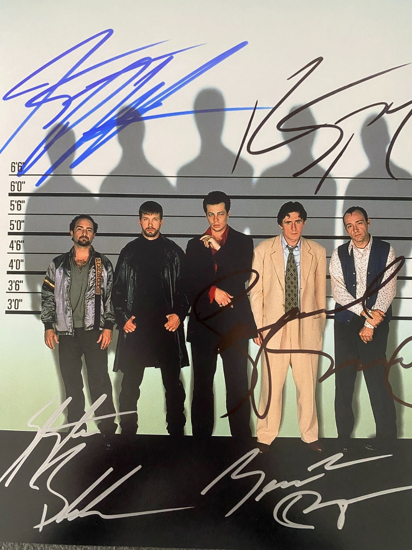 The Usual Suspects cast signed movie signed photo autographed by Stephen Baldwin, Gabriel Byrne, Benicio del Toro, Kevin Spacey and Chazz Palminteri. 8x10 inches.