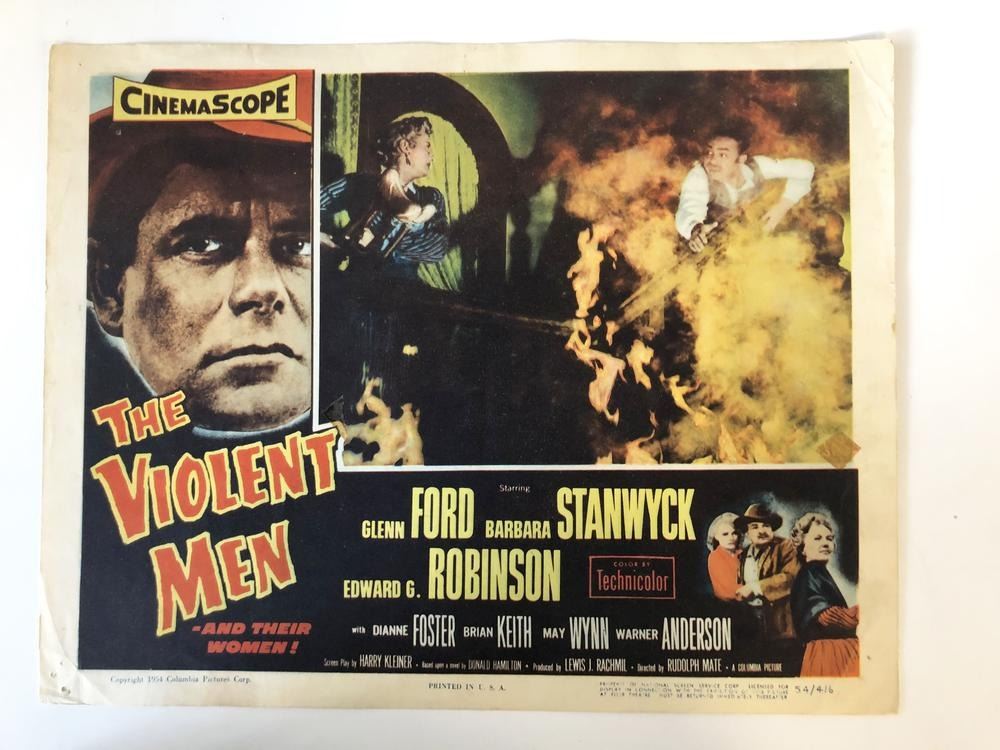 The Violent Men original 1954 vintage lobby card on heavy card stock. 11x14 inches