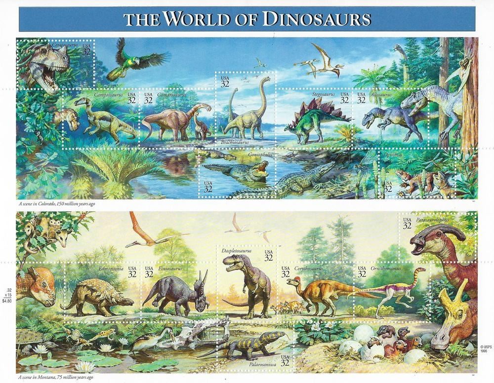 1997 The World of Dinosaurs Sheet of Fifteen 32 Cent Postage Stamps Scott 3136 By USPS.