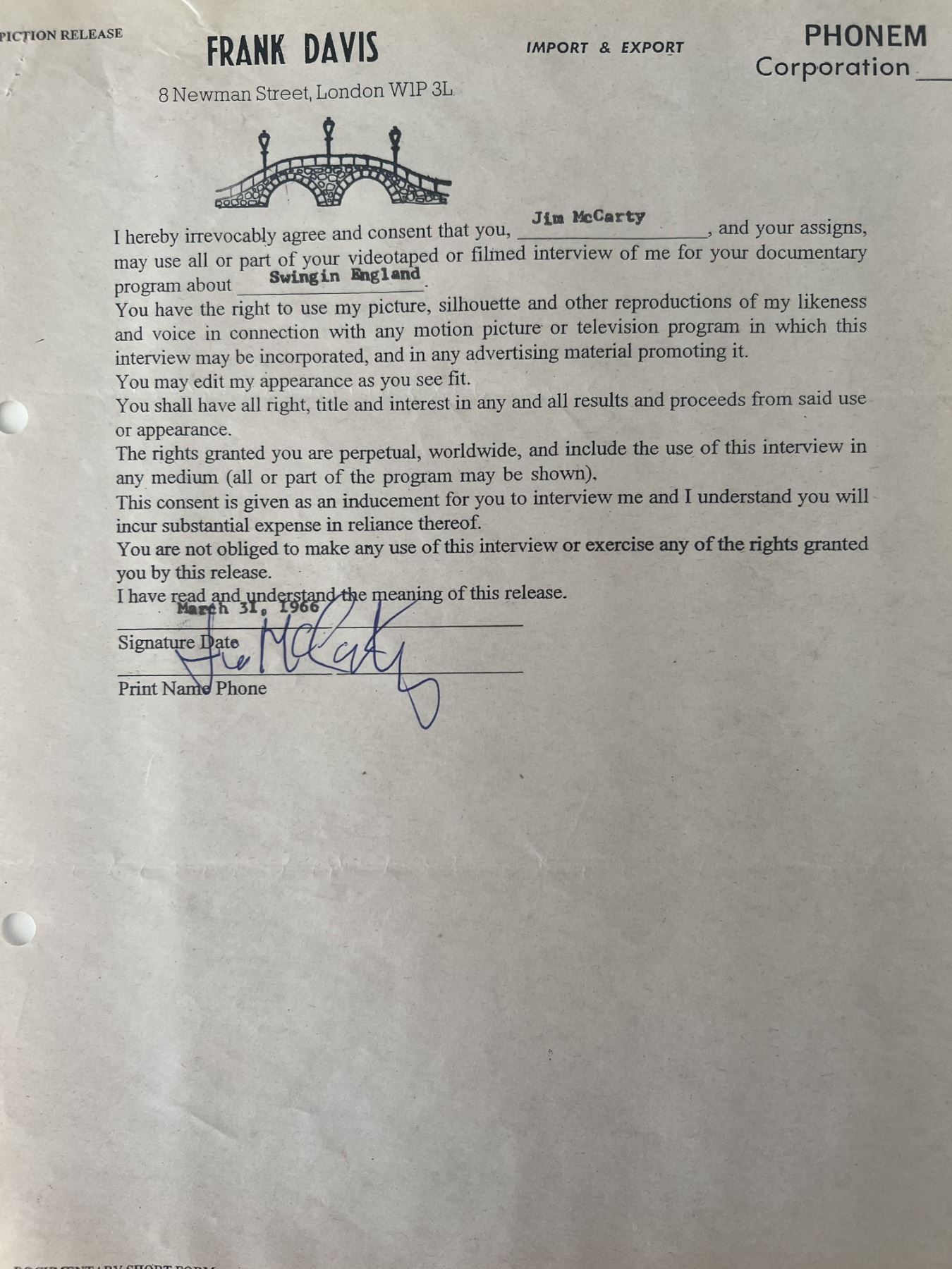 The Yardbirds signed Frank Davis contract autographed by Keith Relf, Jeff Beck, Paul Samwell-Smith, Chris Dreja, and