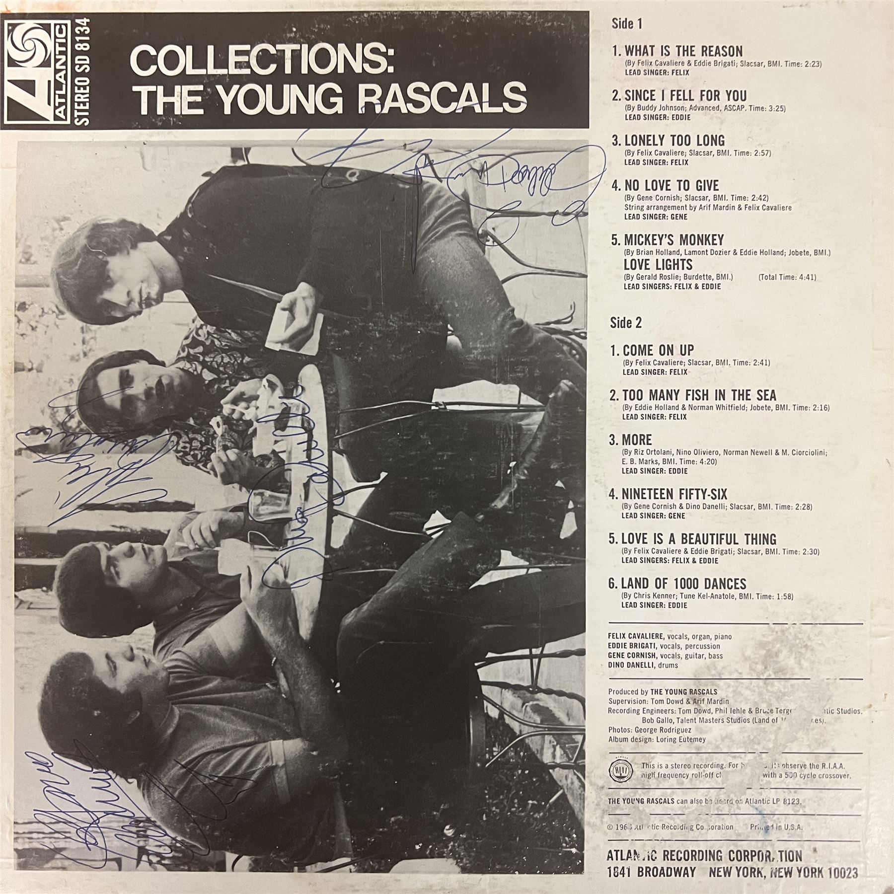 The Young Rascals Ð Collections Signed 1967 Vinyl Album autographed by Felix Cavaliere, Eddie Brigati, Gene Cornish and Dino Danelli. 12x12 inches