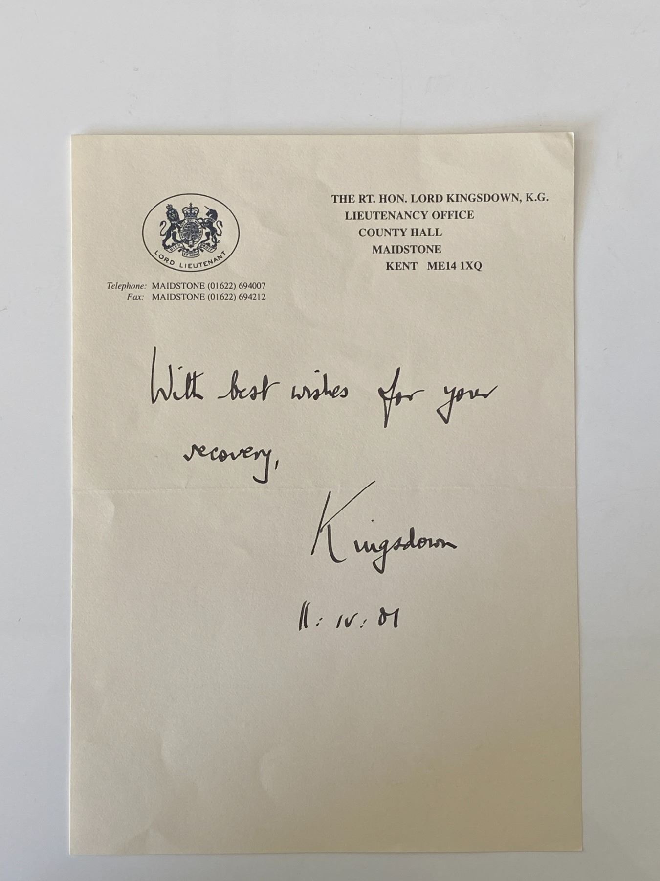 Thomas Pemberton Leigh, 1st Baron Kingsdown signed note.6x8 inches