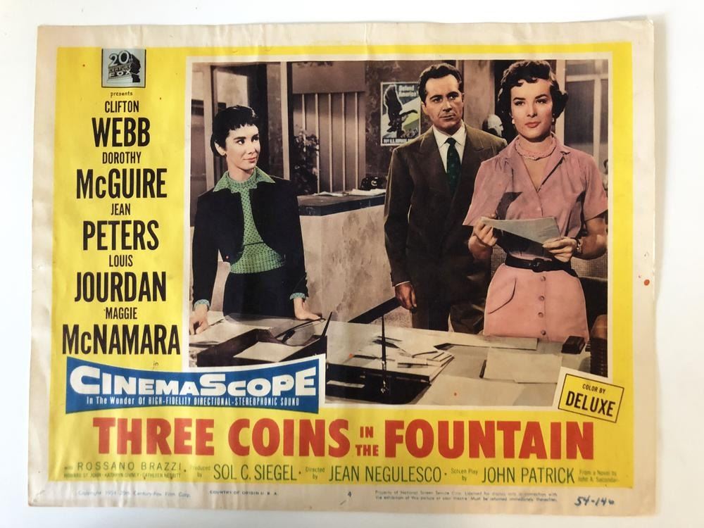 Three Coins in the Fountain original 1954 vintage lobby card on heavy card stock. 11x14 inches