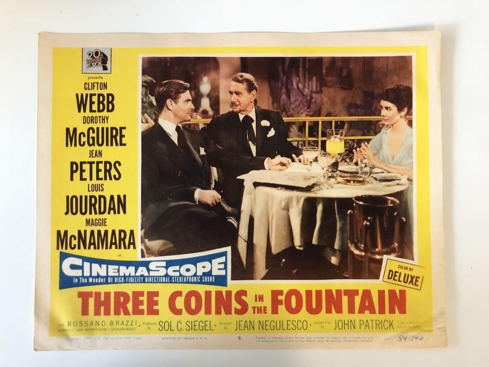 Three Coins in the Fountain original 1954 vintage lobby card on heavy card stock. 11x14 inches