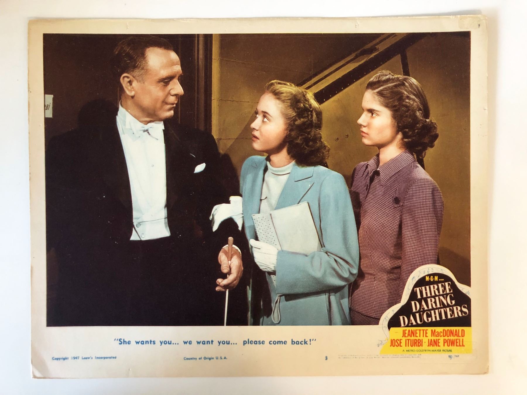 Three Daring Daughters original 1948 vintage lobby card on heavy card stock. 11x14 inches