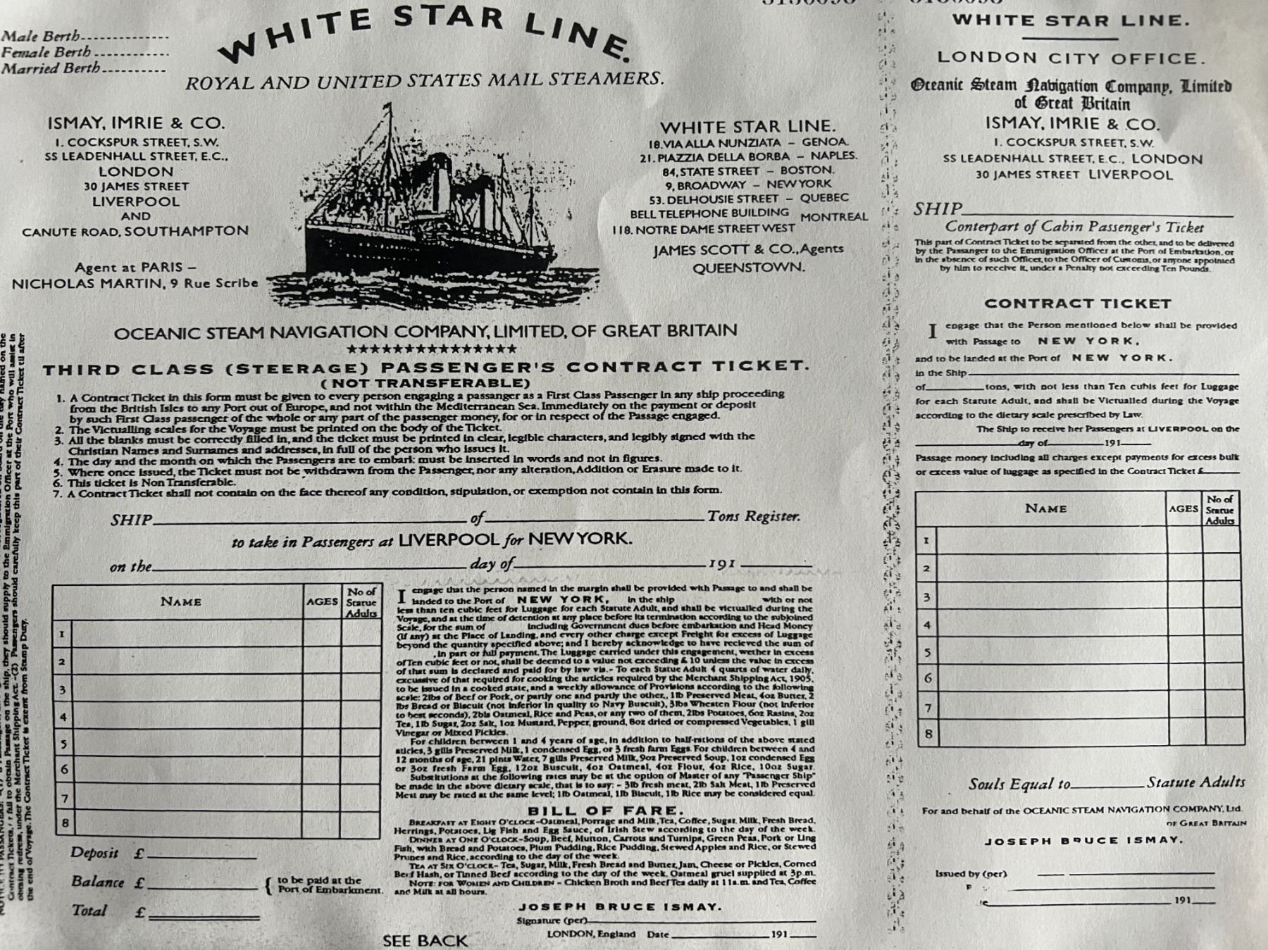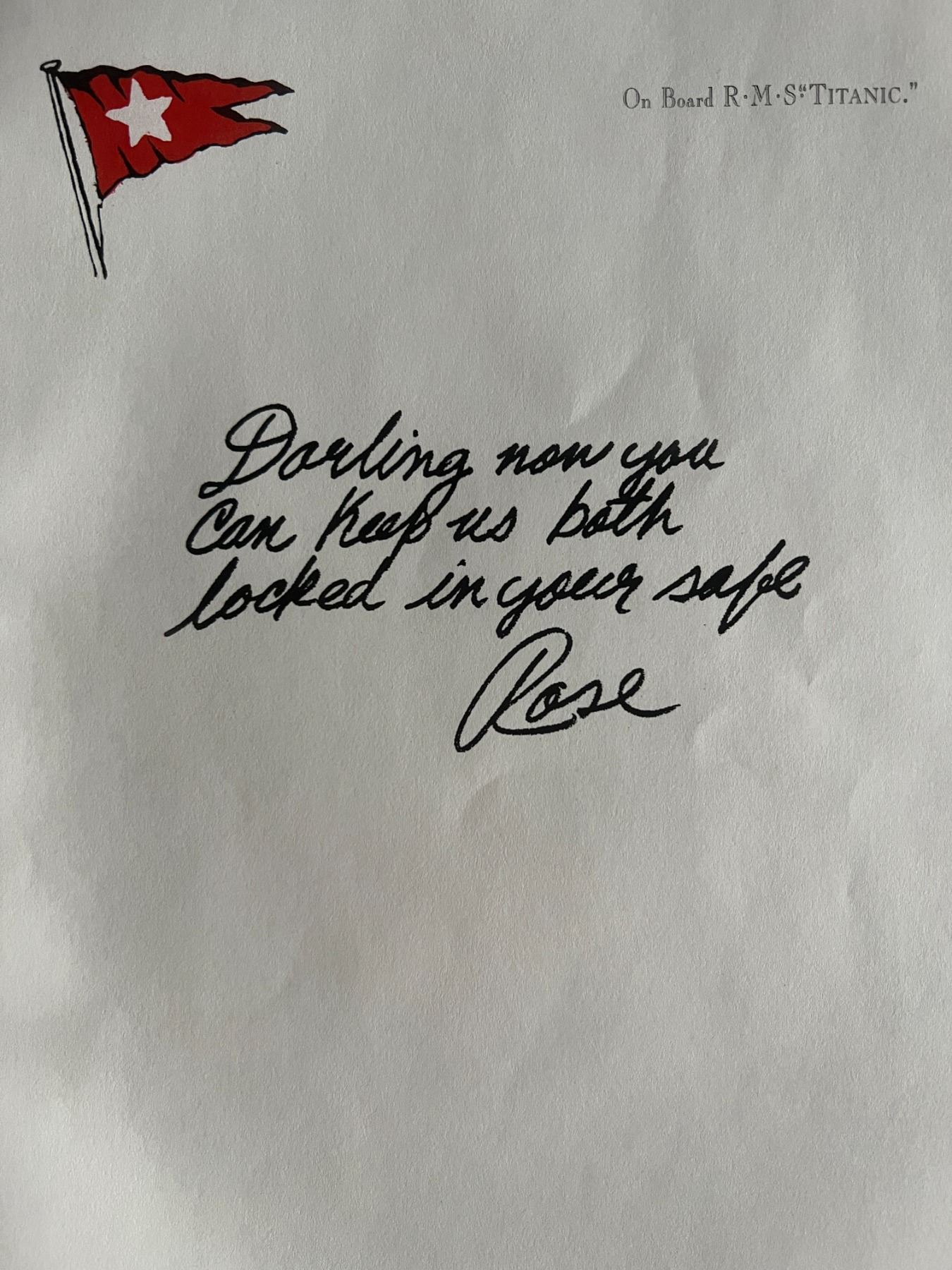 Titanic Rose DeWitt Bukater replica letter and boarding pass. 8x10 inches. This is a prop from the movie Titanic.