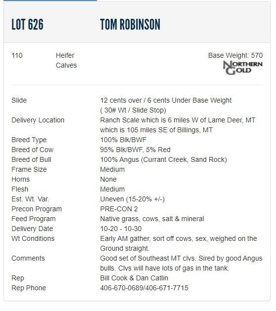 Tom Robinson - 110 Heifers; Base Weight: 570