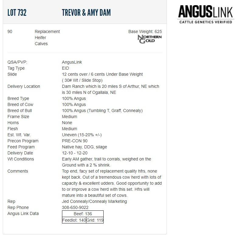 Trevor & Amy Dam - 90 Replacement Heifers; Base Weight: 625