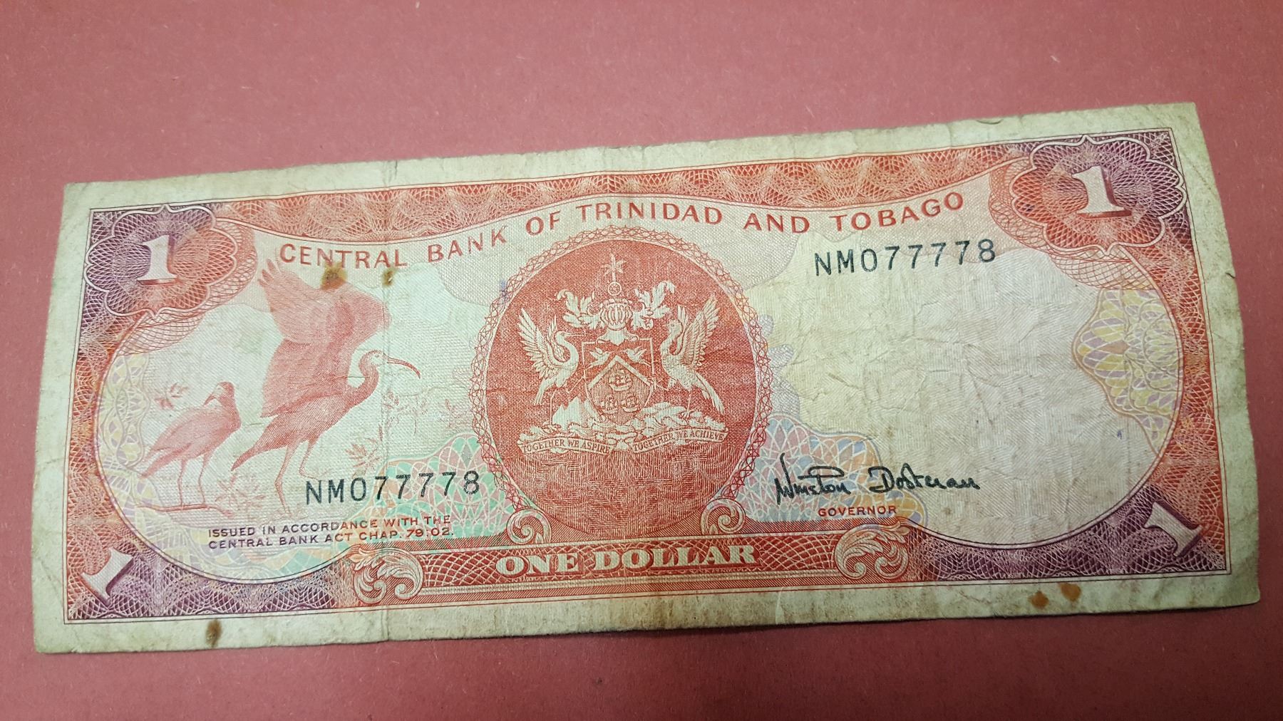Front: Scarlet Ibis (Eudocimus ruber); Back: Eric Williams Finance Building in Port