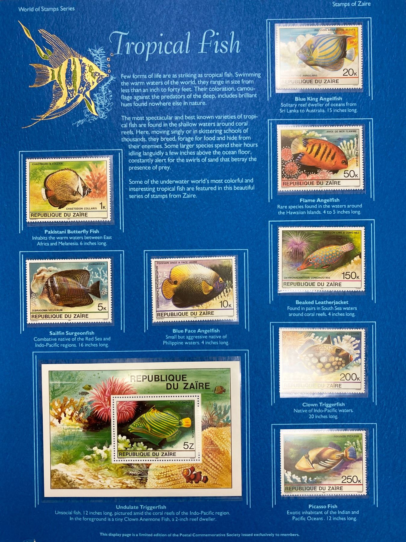Tropical Fish: World of Stamps Series- Republique Du Zaire Stamp sheet