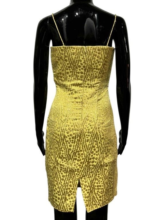 Original gold dress worn by "Sarah Newlin", played by Anna Camp in the fantasy horror drama television series 'True Blood' (2008 - 2014), based on The Southern Vampire Mysteries, a series of novels by Charlaine Harris.