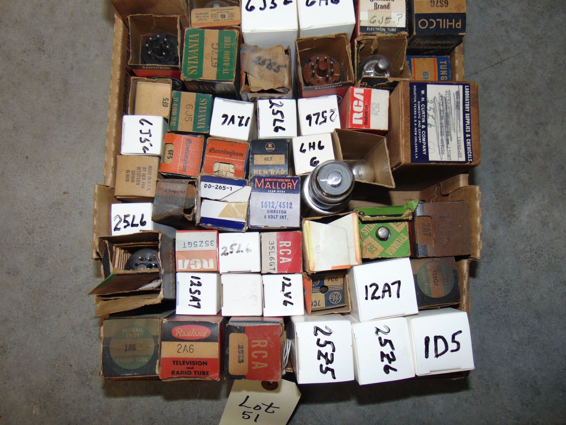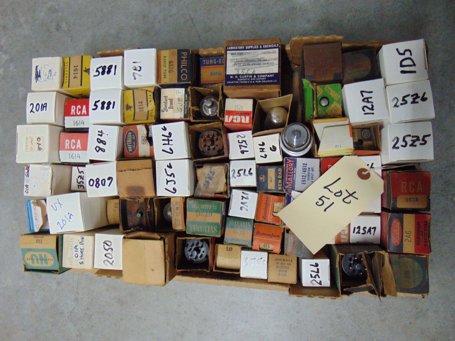 The auction company has made a sampling of the marked tube boxes in an attempt to verify that the tube number marked on the box top is indeed the tube inside the box. However, as every tube box has not been checked, the auctioneer does not guarantee all tube boxes are correctly marked. Again, if you have specific requests to verify type and/or quality of tube, specifics concerning any listed item, contact the auctioneer directly at the number given elsewhere.