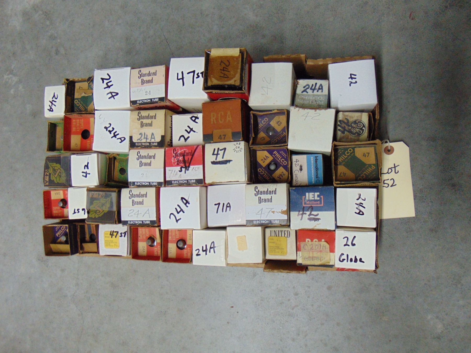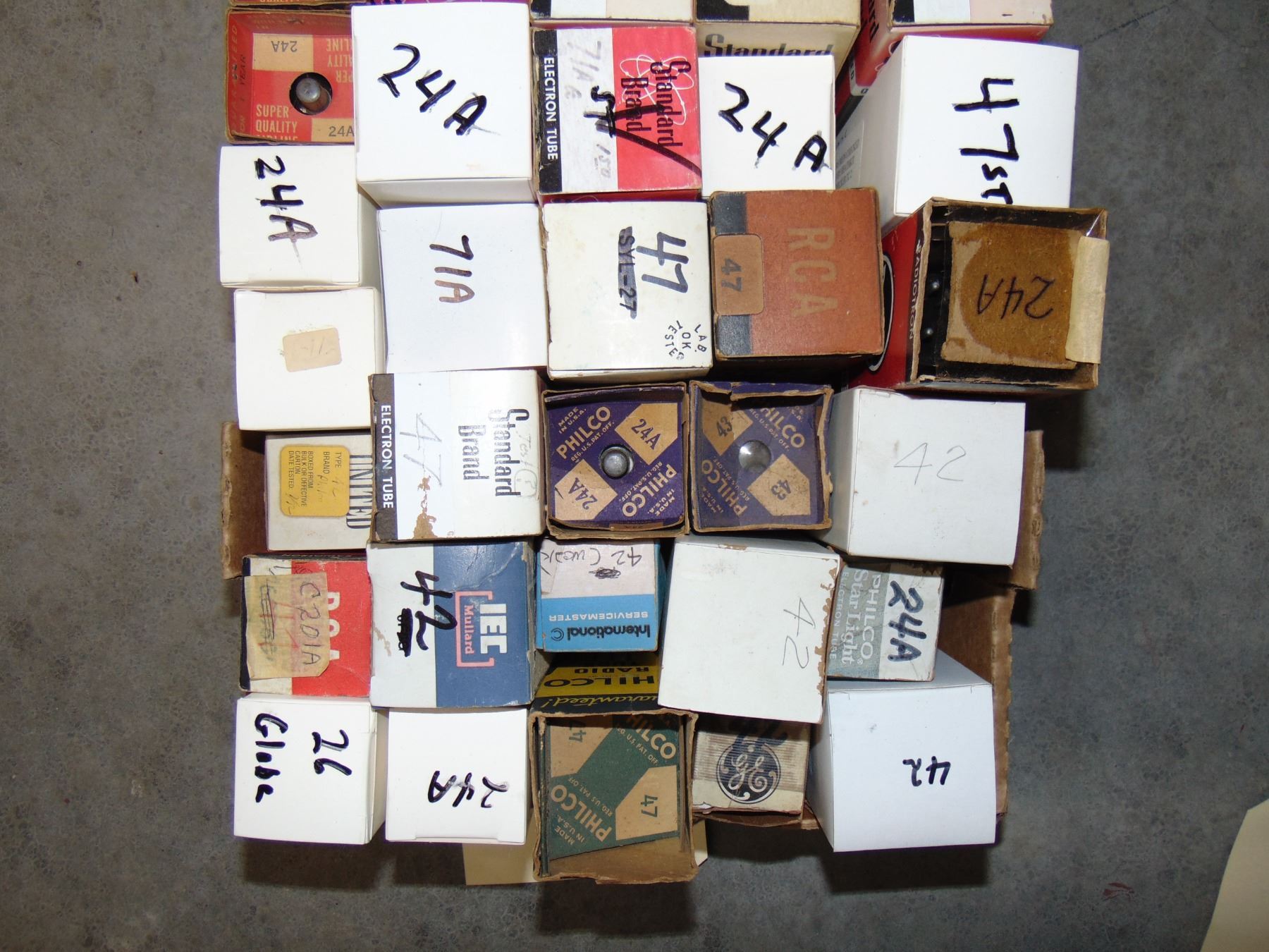 Various new and used vacuum tubes; none tested; many output tubes; approx. 45