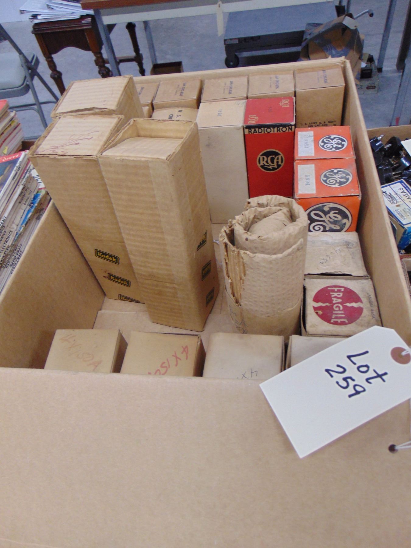 The auction company has made a sampling of the marked tube boxes in an attempt to verify that the tube number marked on the box top is indeed the tube inside the box. However, as every tube box has not been checked, the auctioneer does not guarantee all tube boxes are correctly marked. Again, if you have specific requests to verify type and/or quality of tube, specifics concerning any listed item, contact the auctioneer directly at the number given elsewhere.