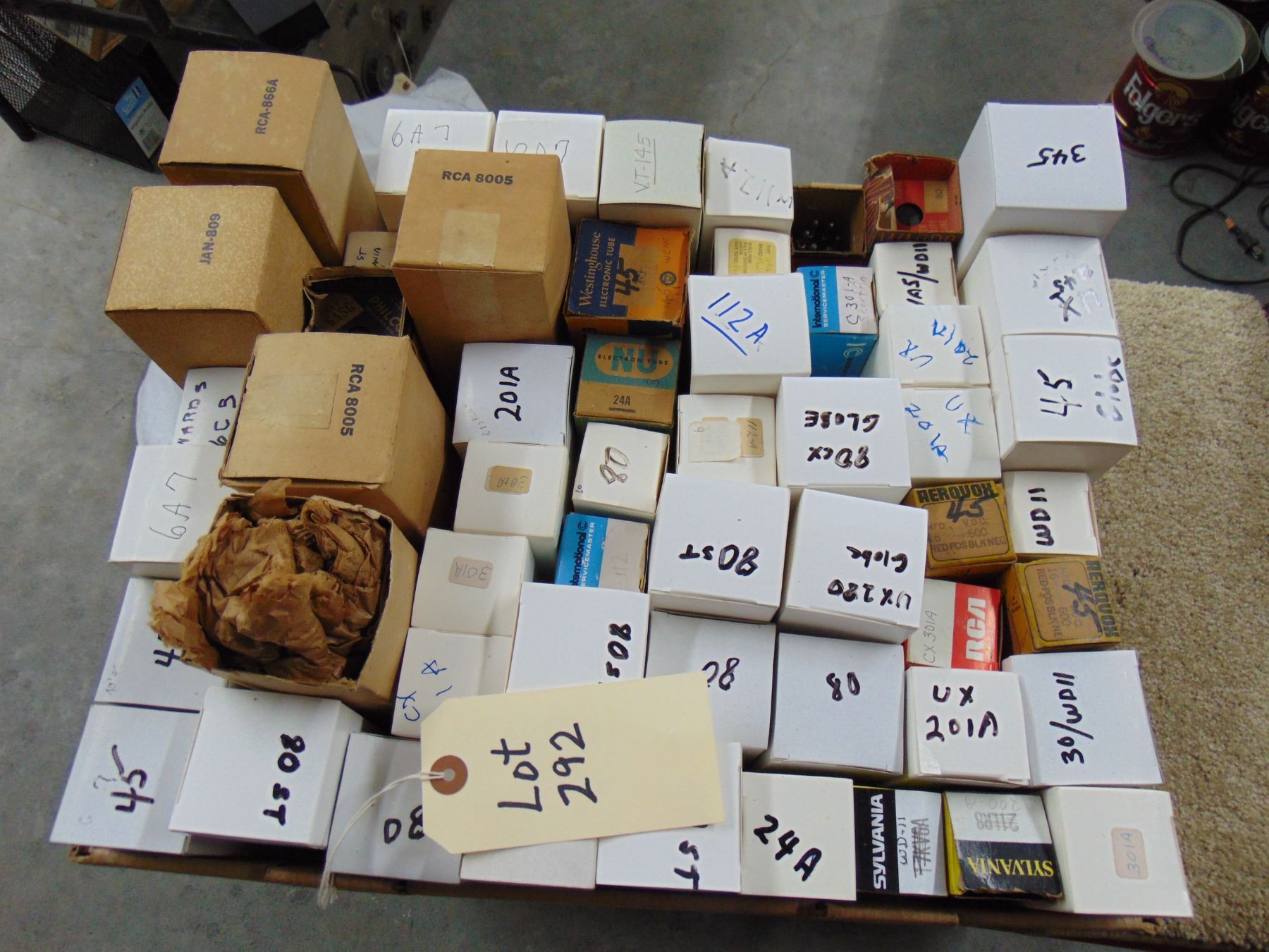The auction company has made a sampling of the marked tube boxes in an attempt to verify that the tube number marked on the box top is indeed the tube inside the box. However, as every tube box has not been checked, the auctioneer does not guarantee all tube boxes are correctly marked. Again, if you have specific requests to verify type and/or quality of tube, specifics concerning any listed item, contact the auctioneer directly at the number given elsewhere.