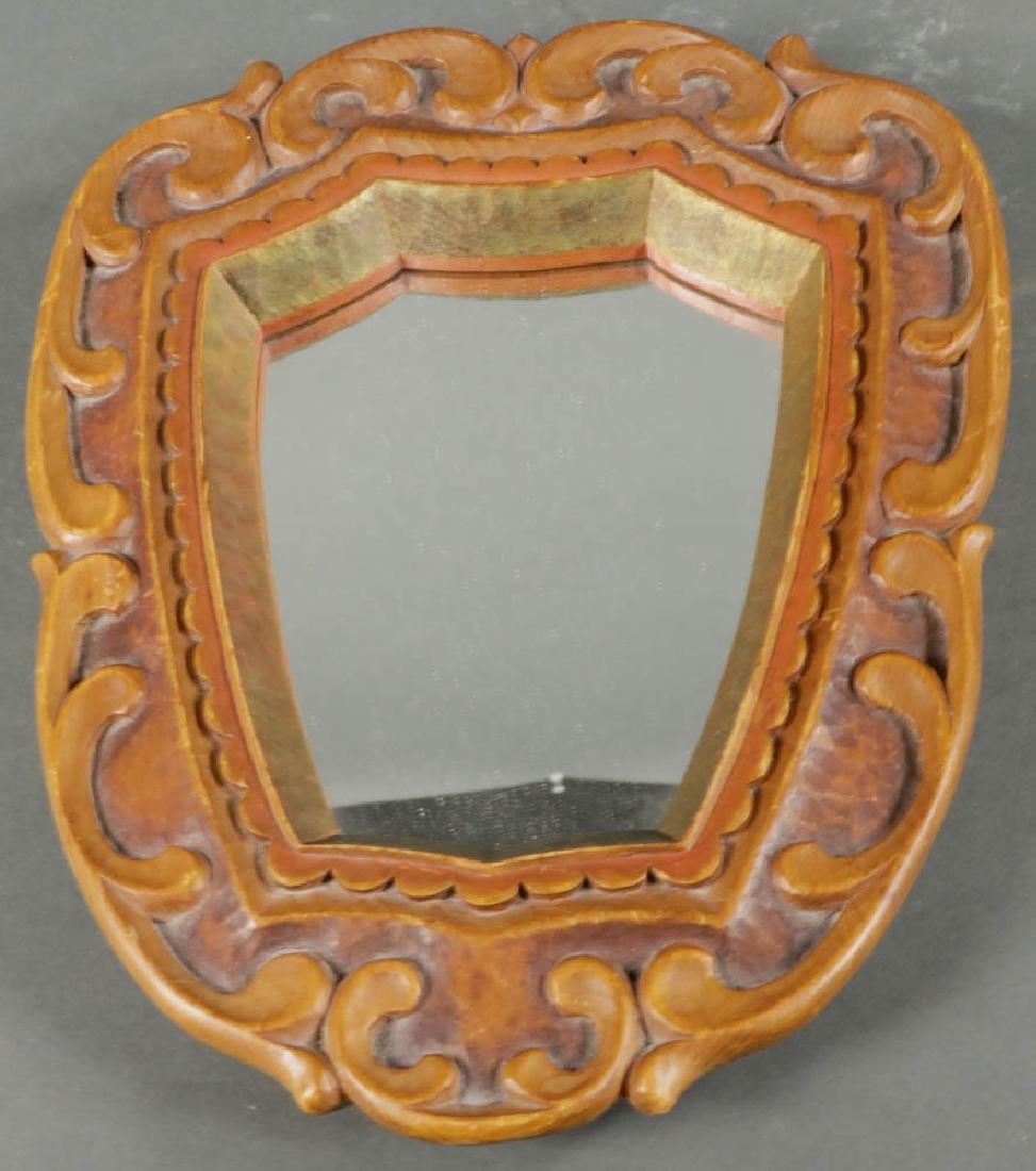 Two small decorative Tyrolean mirrors, 9" x 11 1/2". Provenance: Ursula Bailey Marvin estate.