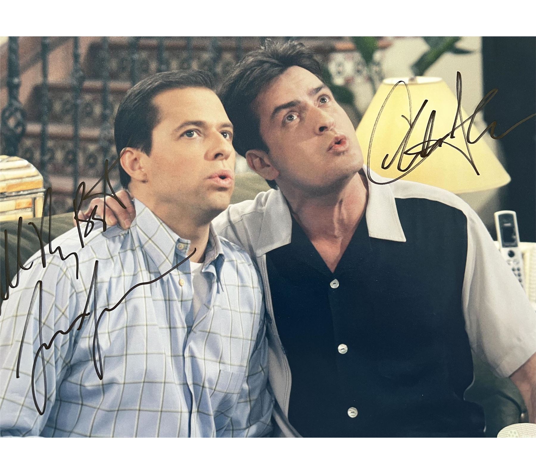 Two and a Half Men Jon Cryer and Charlie Sheen signed photo. 8x10 inches