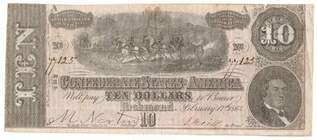 Type 68. 1864 $10 Confederate Note